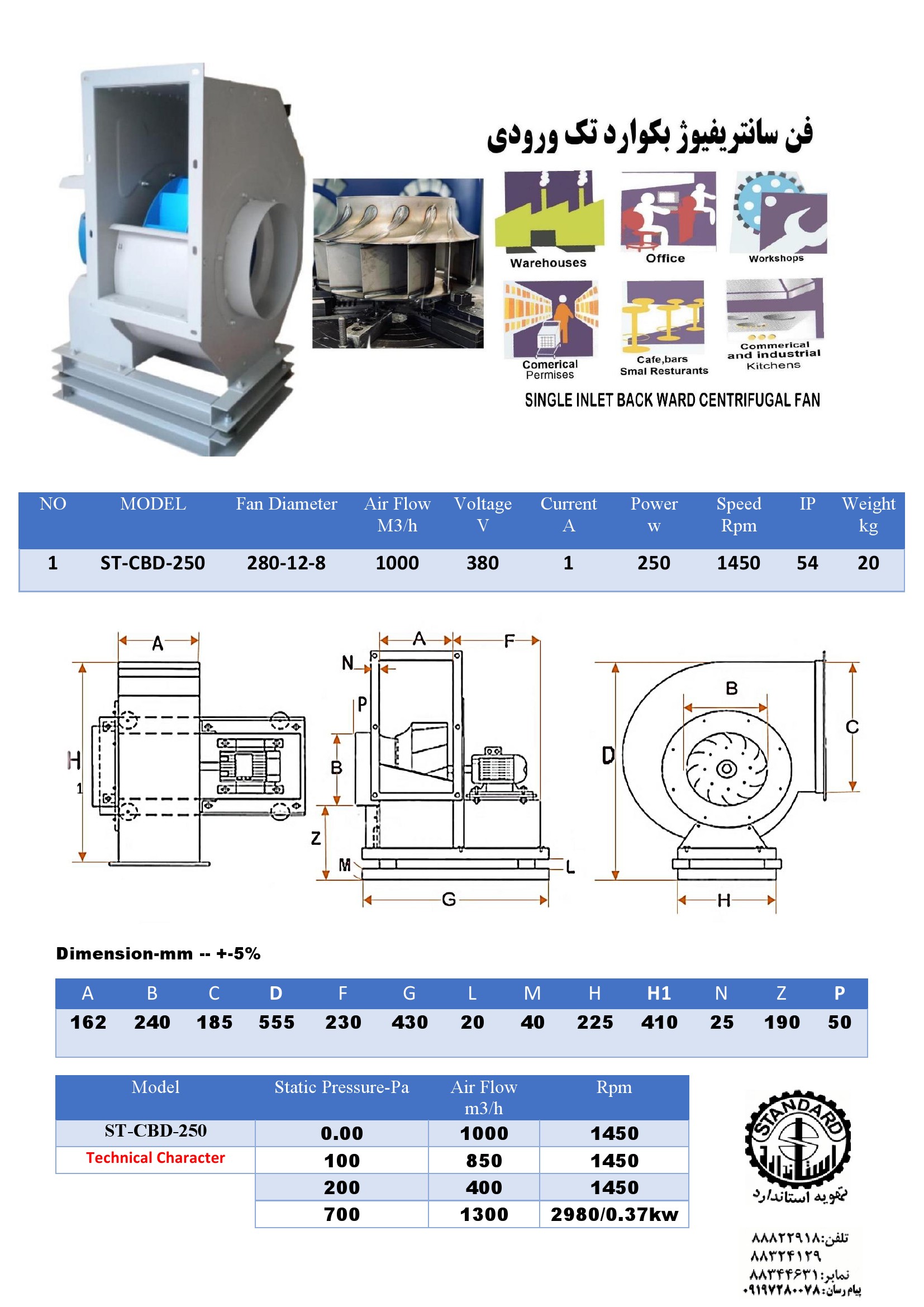 هواکش اگزاست فن مکنده سانتریفیوژST-CBD-250