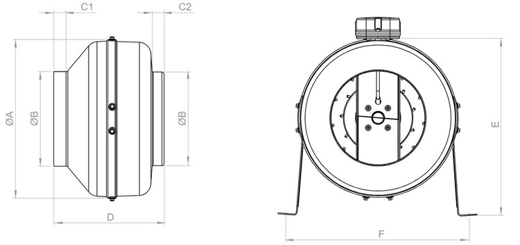 بدنه فن از ورق فلزی گالوانیزه با کیفیت بالا ساخته شده است که در برابر خوردگی مقاوم شده است . همه مدل ها دارای موتور روتور خارجی با ساختار بسته هستند . این فن تا 40 درجه سانتی گراد مقاومت عملکردی داشته و جعبه ترمینال و پایه های نصب به صورت استاندارد به همراه محصول ارائه می شود. نازلهای مکنده و تخلیه هوا با قطر کانال سازگار هستند و میتوان آنها را با گیره متصل کرد.نوع طراحی فن بصورتی است که با مکش قوی و انتقال جریان هوای بالا فضای کمتری اشغال کرده و راندمان بهتری بدست خواهد آمد.