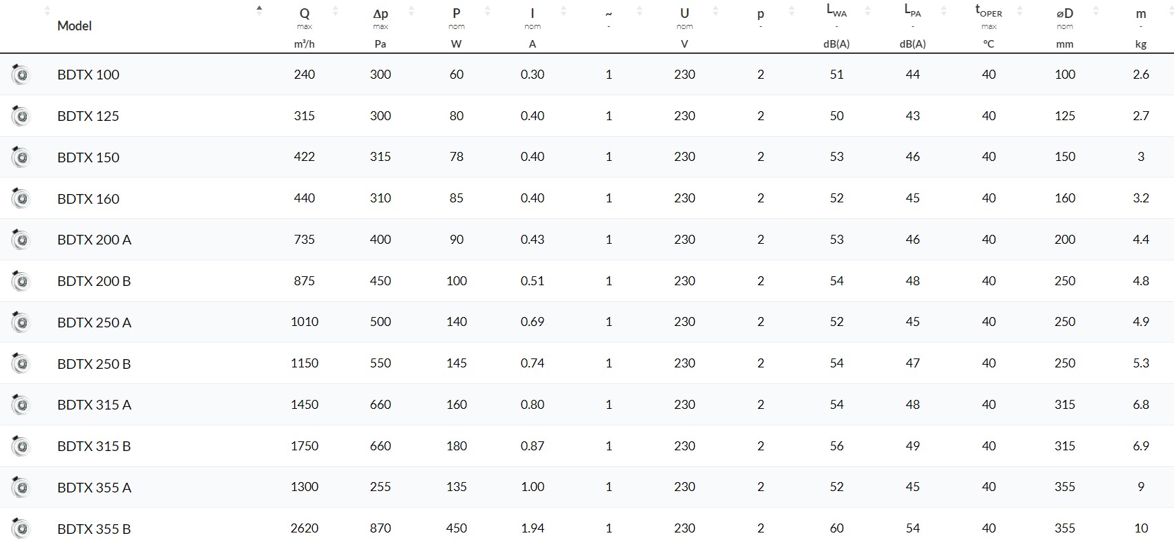 فن بین کانالی پروانه سانتریفیوژ مدل BDTX200