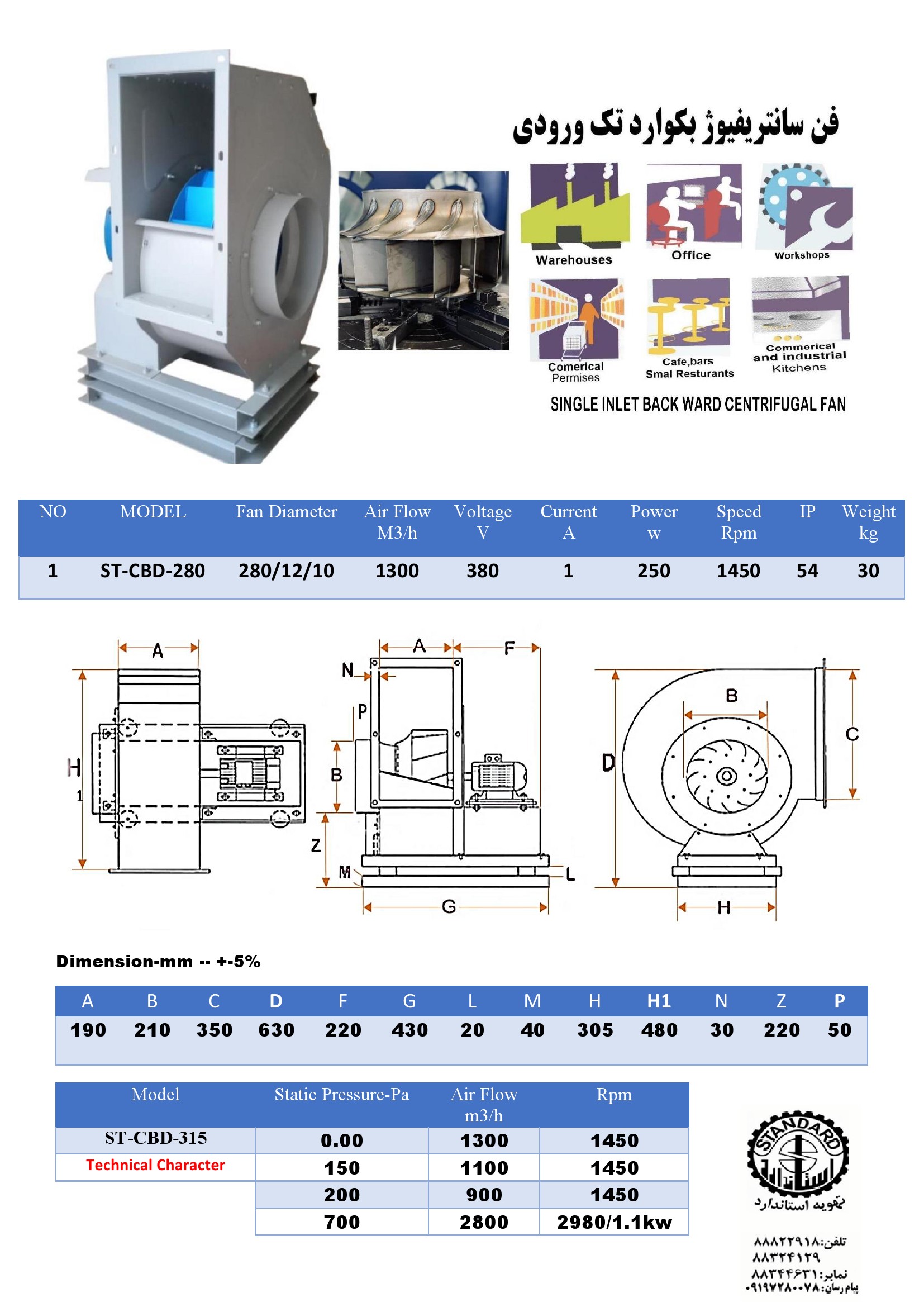 هواکش اگزاست فن مکنده سانتریفیوژST-CBD-280
