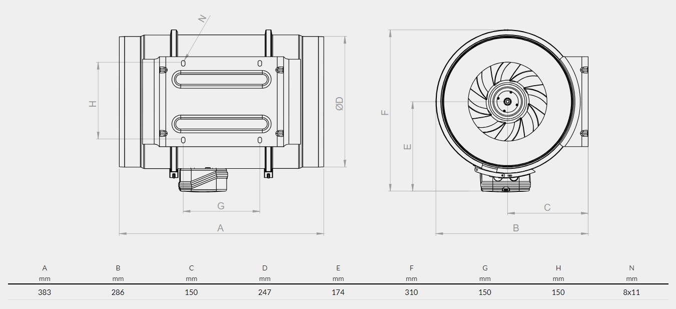 فن های جریان مختلط بین کانالی که بدنه و پروانه از پلاستیک ساخته شده است. با توجه به نوع طراحی بدنه، امکان جداسازی و نصب فن و موتور بدون جداسازی وجود دارد.این سری از فن ها با نوجه به نوع پروانه راندمان قابل قبولی داشته و آنها تقریباً بی سر و صدا کار می کنند. هنگامی که فن به کانال متصل می شود، قسمت موتور به راحتی جدا شده و نصب می شود. این نوع فن دو سرعته می باشد و نازل های مکش و تخلیه با قطر کانال سازگار بوده و با گیره قابل اتصال هستند.با توجه به شرایط طراحی که ترکیبی از فن های گریزاز مرکز و خطی می باشد باعث ایجاد جریان هوای یکنواخت تر و با توان موتور کمتر می باشد.