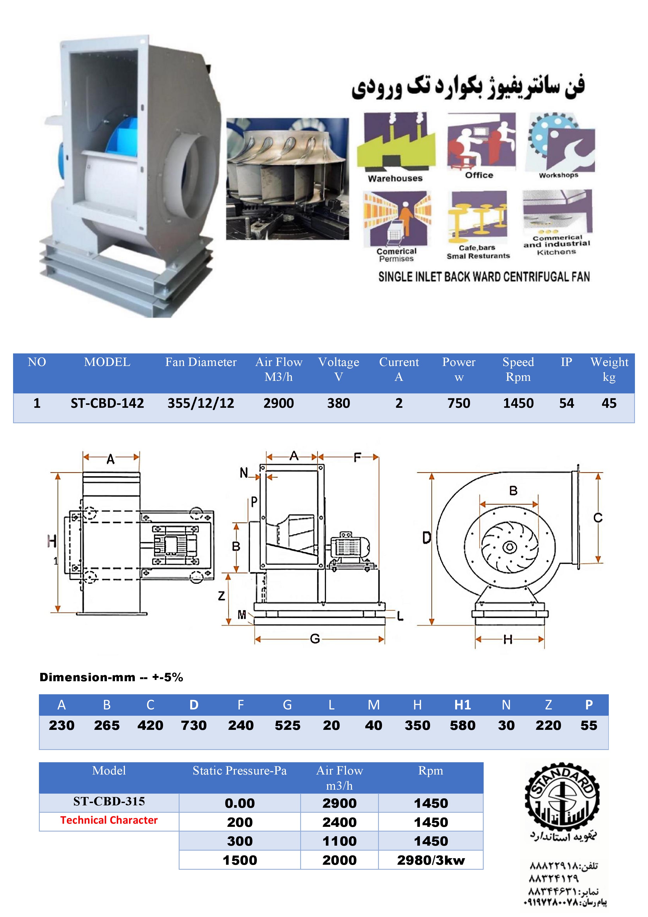 ظرفیت هوادهی 2900M3/H کوپل مستقیم